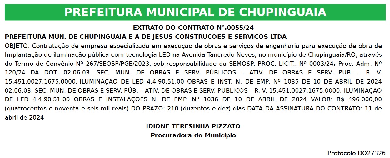 Rondônia – A prefeita do município de Chupinguaia (533 Km de distância até Porto Velho), Sheila Flávia Anselmo Mosso, vai gastar quase R$ 500 mil para instalação de iluminação com tecnologia LED em apenas uma avenida da cidade. Os dados constam no Diário Oficial do Estado de Rondônia.