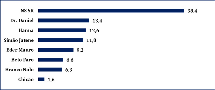 O quarto nome mais citado é do deputado federal Eder Mauro (PL) que desponta com 9,3%. O senador Beto Faro (PT) aparece na pesquisa Doxa com 6,6%. Em última colocação vem o presidente da Alepa, deputado Chicão (MDB) com 1,6%. Os indecisos somam 38,4% e aqueles que pretendem anular ou votar em branco totalizam 6,3%.
