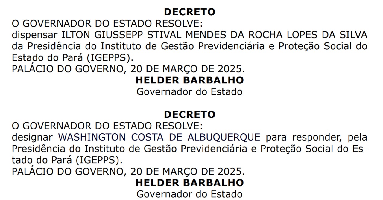 O vereador de Belém, Whashington Costa de Albuquerque, conhecido como Neném Albuquerque (MDB), foi nomeado pelo governador Helder Barbalho (MDB) para a presidência do Instituto de Gestão Previdenciária e Proteção Social do Estado do Pará (Igepps). A nomeação foi publicada no Diário Oficial do Estado (DOE) na sexta-feira, 21, mesma data em que foi oficializada a exoneração do antigo gestor, Giussepp Mendes.