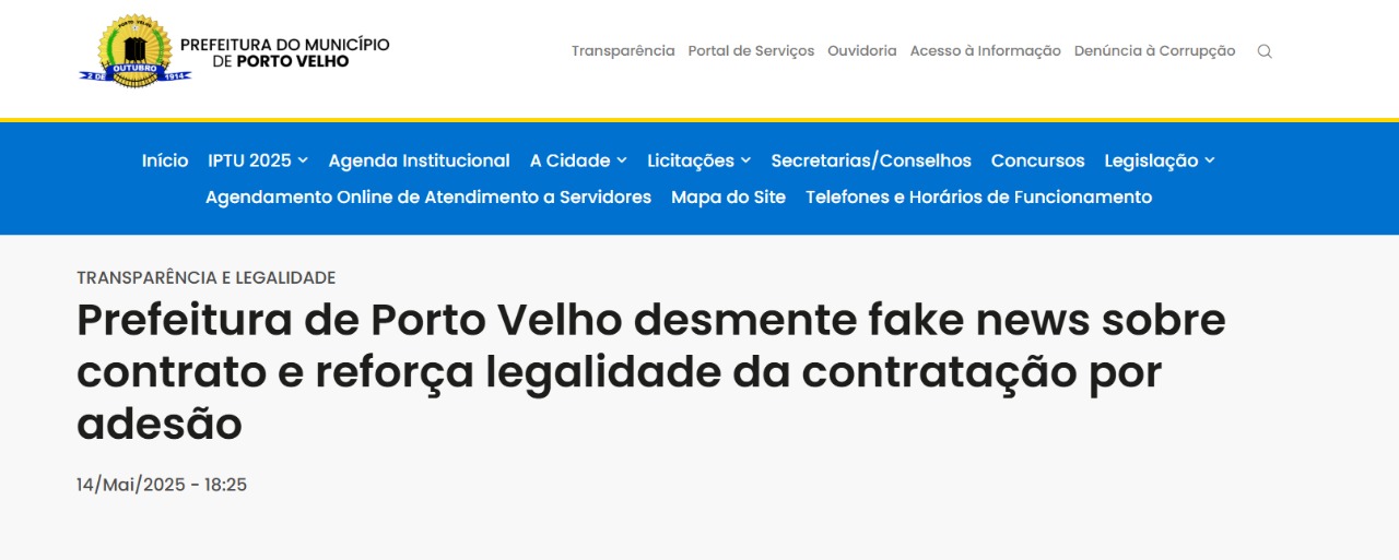 O contrato, que beneficiaria a empresa Plator Engenharia e Meio Ambiente LTDA, já havia sido alvo de denúncia do jornal Rondoniagora, tratado na época com desdém pela própria Prefeitura, que classificou a reportagem como “fake news”.