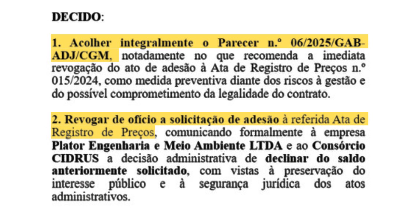 A Prefeitura de Porto Velho voltou atrás e anulou oficialmente a adesão à ata de registro de preços do Consórcio CIDRUS, após o Tribunal de Contas do Estado de Rondônia (TCE-RO) confirmar graves irregularidades no processo.