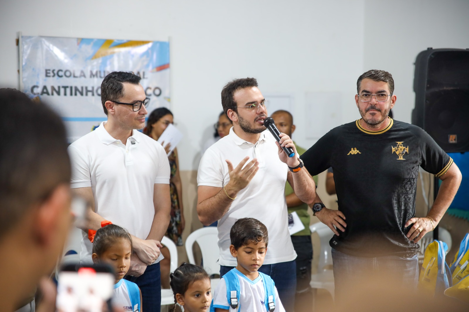 O prefeito André Castro (PP) e a primeira-dama, Maria da Guia, acompanharam a distribuição. O objetivo é padronizar e identificar os alunos da rede, além de oferecer mais conforto no ambiente escolar.