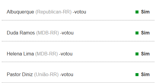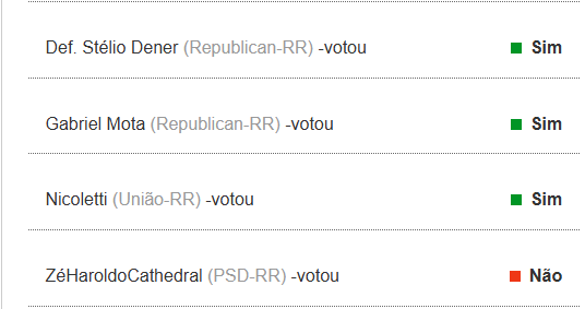 Veja como cada deputado federal de Roraima votou: