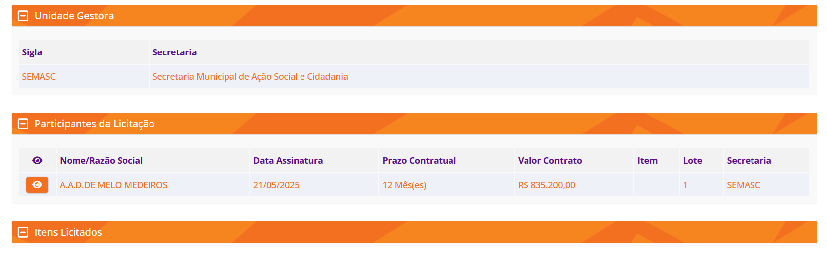 Segundo dados do Portal da Transparência da Prefeitura de Caracaraí, a empresa A.A.D. de Melo Medeiros foi a única participante e assinou contrato de R$ 835,2 mil, enquanto o edital previa R$ 1,4 milhão para o fornecimento das cestas. O acordo foi firmado em 21 de maio deste ano e tem validade de 12 meses, sob gestão da Secretaria Municipal de Ação Social e Cidadania (SEMASC).