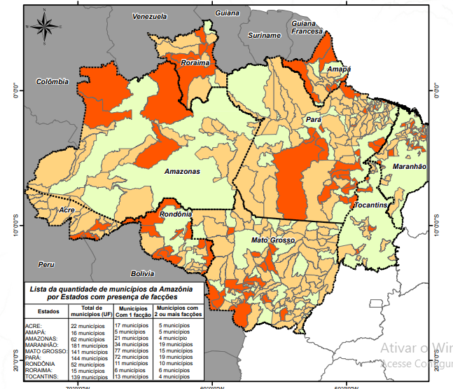 Segundo o relatório, dos 772 municípios amazônicos, 344 (44,6%) apresentam alguma evidência da presença de facções, que demonstraria um processo que supera os grandes centros urbanos.