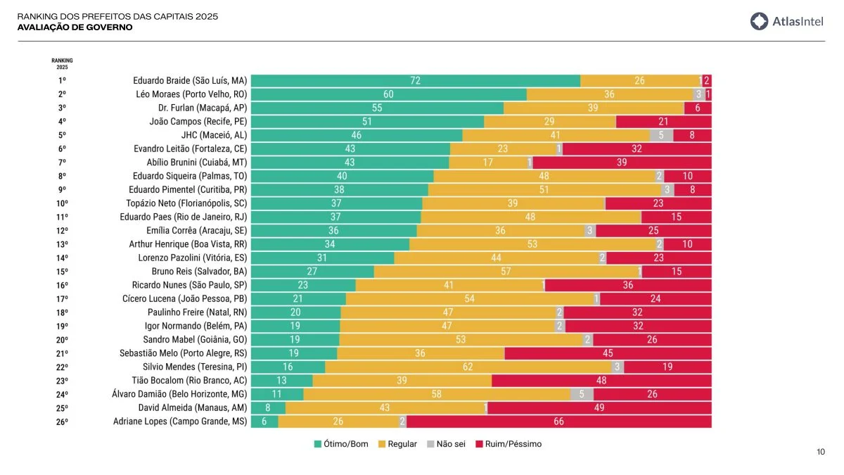 Quando considerada exclusivamente a avaliação da gestão de Igor Normando, Belém aparece na 19ª posição entre as capitais analisadas pelo levantamento.