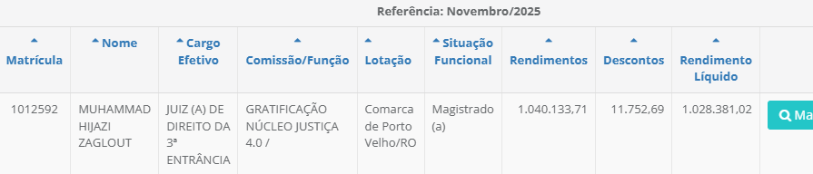 - Muhammad Hijazi Zaglout – Comarca de Porto Velho/RO: R$ 1.028.381,02.