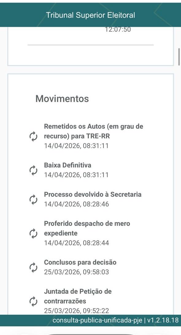 O recurso foi encaminhado à Corte Eleitoral após a conclusão de todas as etapas processuais na 5ª Zona Eleitoral, incluindo o julgamento dos embargos de declaração. A próxima fase consiste na distribuição do processo a um relator, responsável por abrir vista ao Ministério Público Eleitoral (MPE) para emissão de parecer. Em seguida, a ação será submetida à apreciação do plenário do TRE-RR.